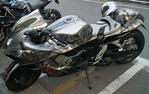 sulla moto è dipinta la skyline di Chicago, c'L anche michael jordan e lo stemma dei chicago cubs. Stile di vita? Meglio allora una bottiglia di amaro ramazzotti |