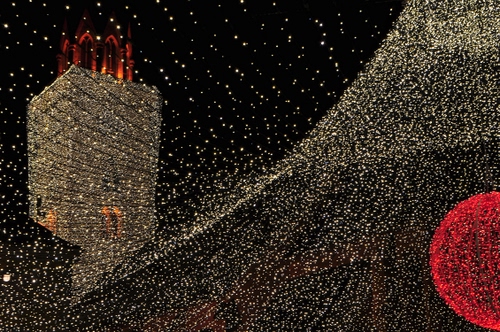 woowwwwwwwwwwwwwwwwww Villach con il suo campanile coperto di luminarie e il tetto luminarioso della pista di pattinaggio ![]() |
