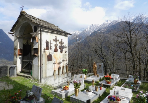 Pianazzola, un paesino che profuma intensamente di atmosfere ottocentesche, romantiche, che possiamo ancora sorprendere e che ci sorprendono nel reticolo degli stretti viottoli e vicoli, nelle ripide scalette, nei minuscoli orti, nei balconi ben curati, nelle finestre strombate, nella policromia delle facciate, mai monotone, mai monocordi, che vivono del connubio del legno e della pietra, negli scorci dove le diverse ore del giorno restituiscono cangianti e leggeri giochi di luce, nella quattrocentesca chiesetta di San Bernardino da Siena (ampliata nel Seicento), appartata sul lato orientale del paese ed affacciata all’imbocco della Val Bregaglia, nel minuscolo cimitero, dove davvero non si respira aria di morte, ma di assopimento.