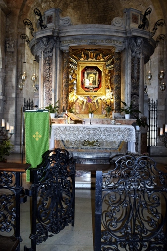Tag: altare, chiesa, cancello, quadro, verde, oro, messale, pizzo, tovaglia, cappella, leggio, cancellata, pizzi, colonne, cornice, luci, interno.