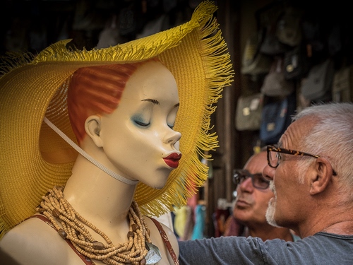 Tag: cappello, manichino, giallo, collana, occhiali, uomini, labbra, barba, bacio, persone, donna, orecchio, due, negozio, rosso, bocca, rossetto.