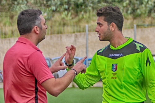 Allenatore ed arbitro si incontrano scontrandosi.