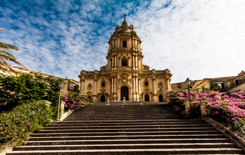 Foto bene eseguita, bella composizione classica con soggetto perfettamente al centro della scena e del punto prospettico. Fiori e vegetazione diversi sui lati della scalinata non sono ottimali perchè cromaticamente e disposti in maniera diversa un po' rompono con la perfetta architettura d'impianto. Esposizione corretta e colori ravvivati dalla luce proveniente dalla parte destra. Bello il cielo parzialmente nuvoloso disturba invece sulla parte alta a destra il cielo un po' troppo chiaro!Leggera pendenza della prospettiva a sinistra, si poteva allineare meglio. |
