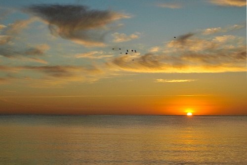 Tag: mare, nuvole, tramonto, uccelli, cielo, sole, alba, arancio.
