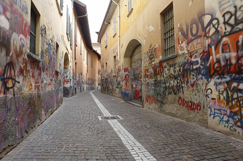 Altri tag (senza riscontro): strade, nero, rosso, cubetti, bianco, imbrattati, pavimento, grondaia, porta, archi, centrale, cielo, grate, giallo, blu, finestra, sampietrini, selciato, paese, borgo, murale, vandalismo, porfido, inferriata.