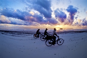 Sulla spiaggia in bici