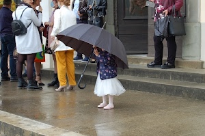 Alle prese con un grande ombrello