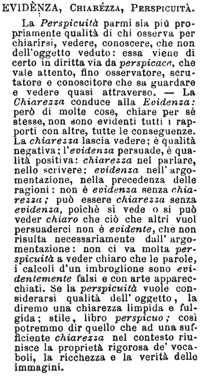 | Chiarezza - La chiarezza è qualità indispensabile all'elocuzione, senza di che non può intendersi facilmente ciò di cui si parla o scrive.