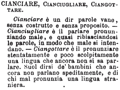 | Cambiando una lettera sola si può ottenere: cianciate. |