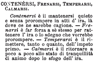 | »» Vedi anche la pagina frasi con contenersi per una lista di esempi. |