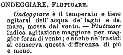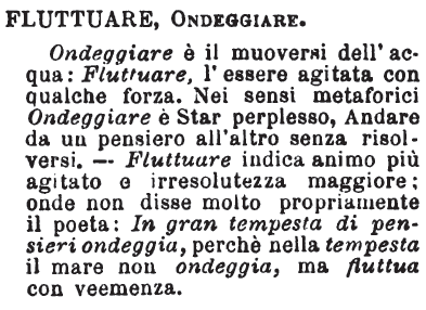 | Usando "fluttuare" (*) si possono ottenere i seguenti risultati: * erta = fluttuata; * erte = fluttuate; * erti = fluttuati; * erto = fluttuato. |