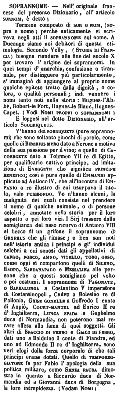 | Soprannome - Nell'originale francese del presente Dizionario, all'articolo surnom, è detto;