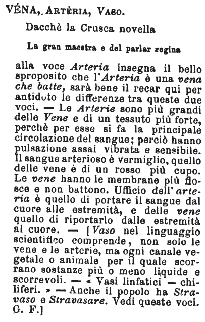 | Vena, Arteria, Vaso - Dacchè la Crusca novella